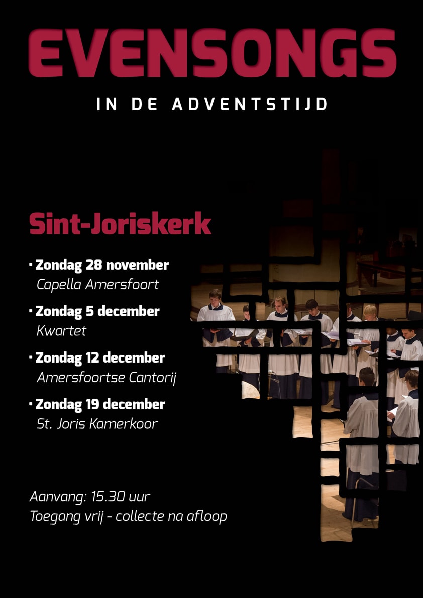 De Raad van Kerken Amersfoort organiseert ieder jaar twaalf evensongs. Deze evensongs vinden plaats in de Sint-Joriskerk. De volgende choral evensongs zien we tegemoet, op zondagmiddagen, aanvang 15.30 uur. Toegang vrij, collecte bij de uitgang.