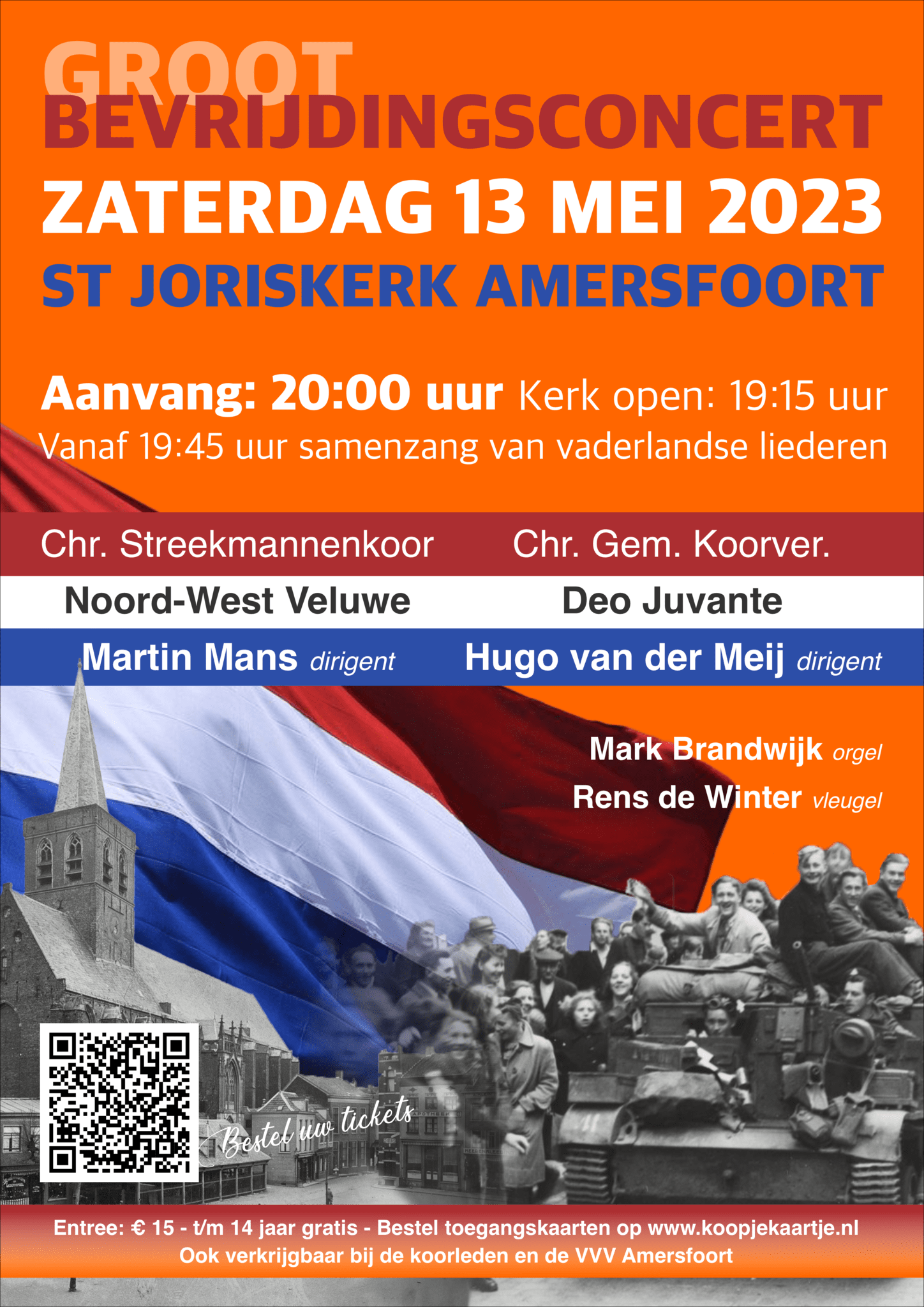 In de Sint-Joriskerk wordt op 13 mei een groot bevrijdingsconcert georganiseerd. Er zullen twee bekende koren optreden, namelijk: Chr. Gem. koorver. ‘Deo Juvante’ uit Huizen o.l.v. Hugo van der Meij en Chr. Streekmannenkoor ‘Noord-West Veluwe’ o.l.v. Martin Mans. De koren zullen worden begeleid door Mark Brandwijk aan het orgel en Rens de Winter zal de vleugel voor zijn rekening nemen.