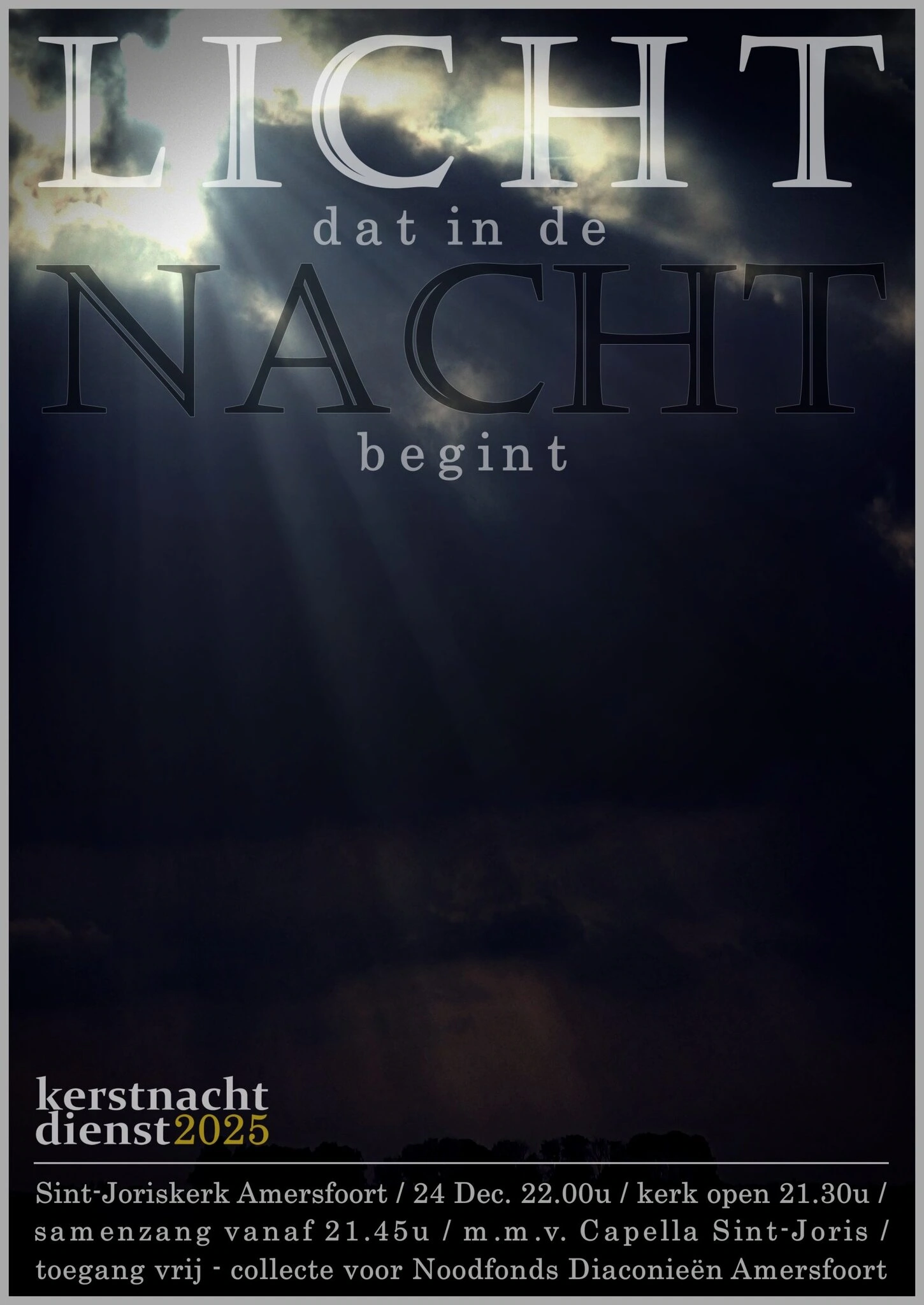 Woensdag 24 december om 22.00 uur vindt in de Sint-Joriskerk in Amersfoort de Kerstnachtdienst plaats. Het thema is: ‘Licht dat in de nacht begint’.