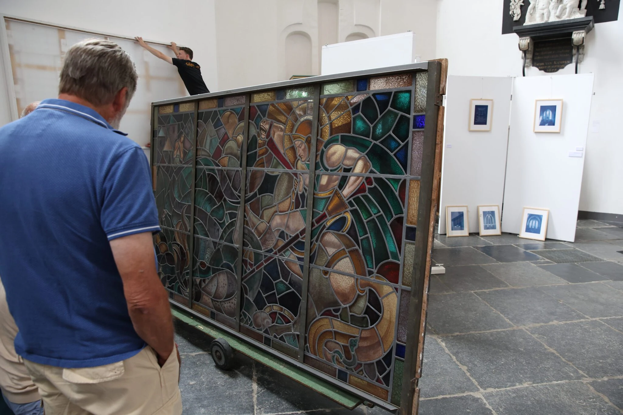 De Rijksdienst voor Cultureel Erfgoed zocht een nieuw onderdak voor het prachtige raam. Het kunstwerk, gemaakt tussen 1925 en 1940 in Den Haag, illustreert de legende van Sint-Joris en de Draak. Ridder Joris bevrijdt de stad van een draak die dood en verderf brengt. Het kunstwerk bestaat uit heldere kleuren en is gelegd in lood. De kunstenaar in kwestie is G.A.H. van der Stok.