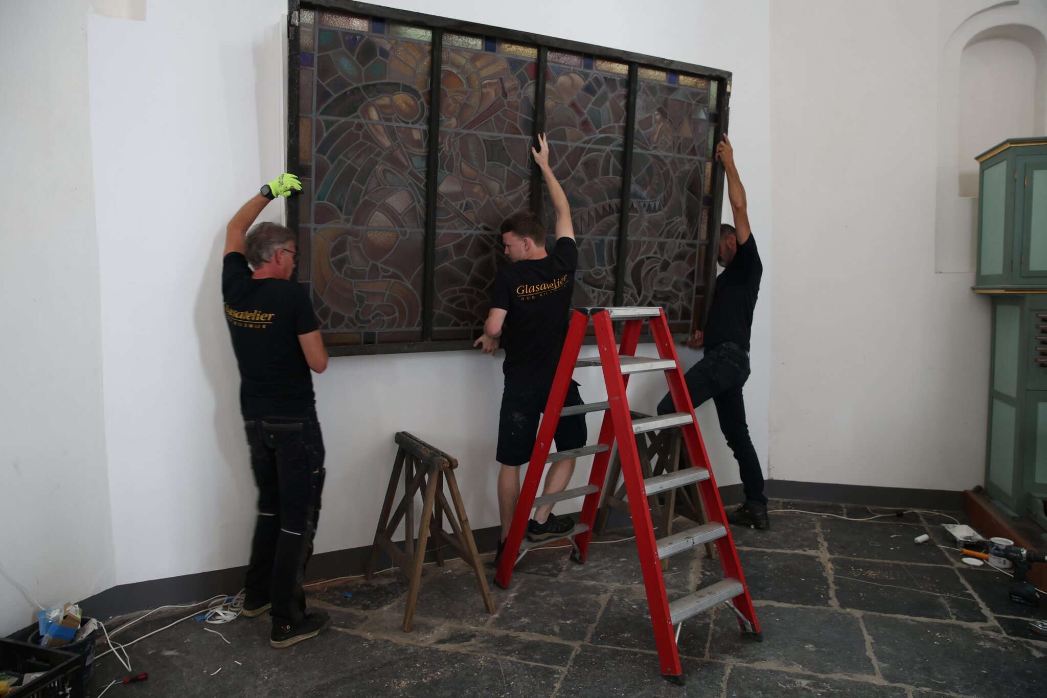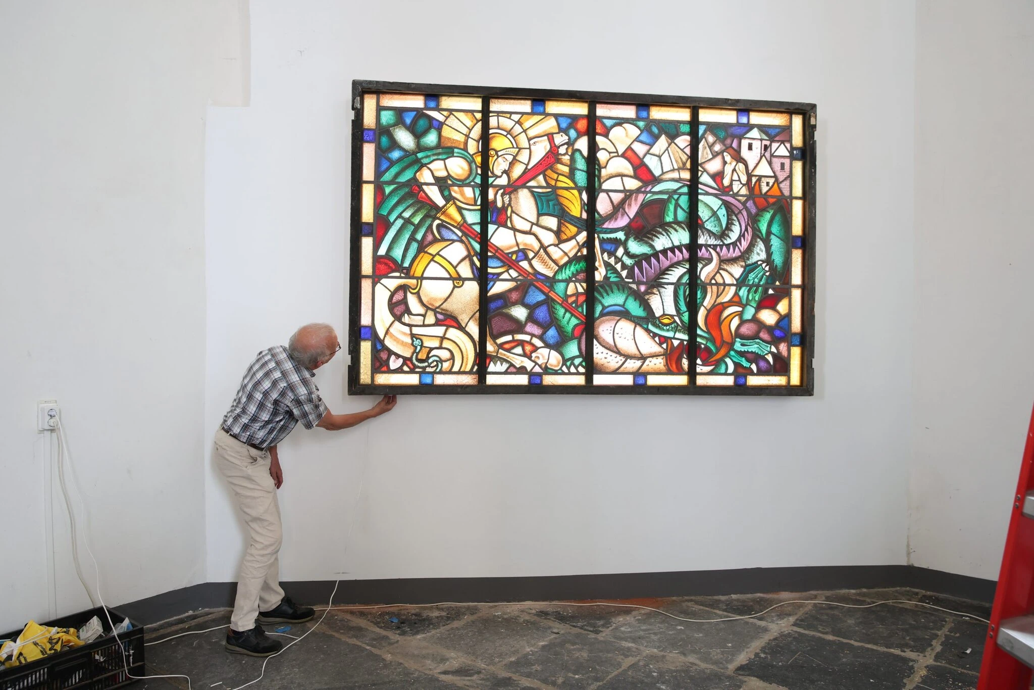 Vanaf vandaag is de Sint-Joriskerk weer een kunstwerk rijker: een glas-in-lood over Sint Joris en de Draak. Het hangt per vandaag aan de noordbeuk van de kerkzaal.